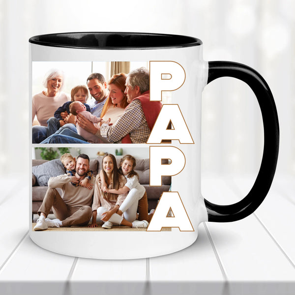 Lepd meg Életed legfontosabb férfiját – Papa– egy igazán személyes és különleges ajándékkal! Az egyedi Papa bögre lehetőséget ad arra, hogy saját fotókkal és akár személyes üzenettel tedd felejthetetlenné a hétköznapi kávézást vagy teázást.